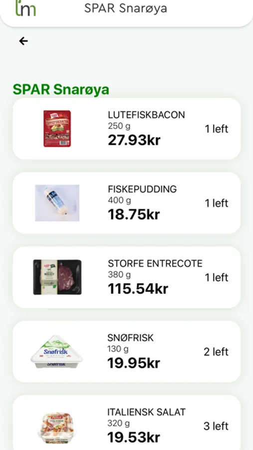 The app gives you a full overview of items that have a reduced price, either because they are approaching the expiration date or because they can not be sold at full price for other reasons. This allows you to plan the purchase of these discounted items, go to the store to buy them and prevent the items from being thrown away. You make a good deal for yourself, for the store and not least - for the environment!