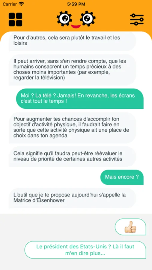 Complémentaire aux recommandations médicales, il te propose des séances de discussion écrite à intervalles réguliers.