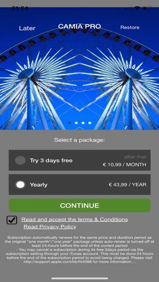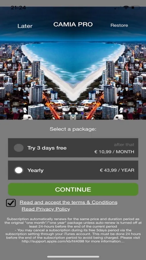 - Any unused portion of a free period, will be forfeited when the user purchases a CAMIA Pro subscription