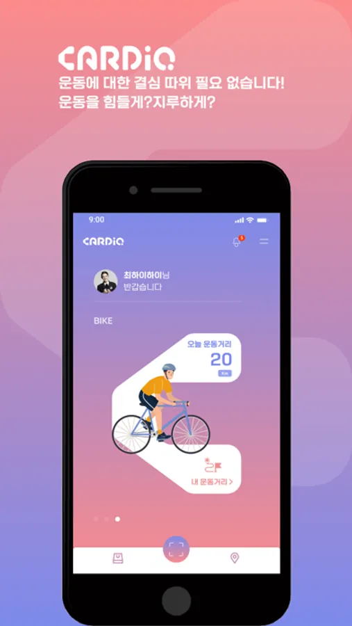 카디오는 카디오 기술이 접목된 메타바이크(실내자전거)와 메타런(런닝머신)에 로그인하는 수단으로 활용 됩니다. 간단하게 QR로 로그인하고 운동데이터와 리워드 포인트를 관리해 보세요.