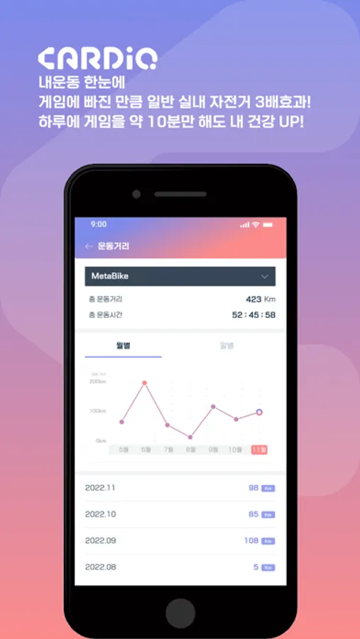• 카디오는 카디오의 기술이 접목된 실내자전거와 런닝머신에서만 사용이 가능한 앱니다.