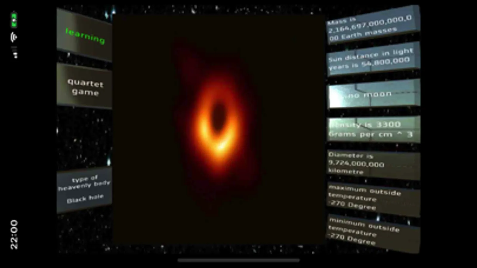 Educational game for children to learn the celestial bodies (all planets included, many known moons, asteroids, stars, black holes and the latest a nebula).