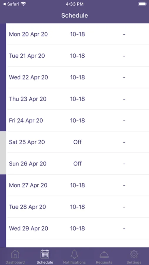 SMRT mobile app allows staff to check their dashboard, to access their schedules and to have full visibility over holiday availability within their rolls one year in advance.