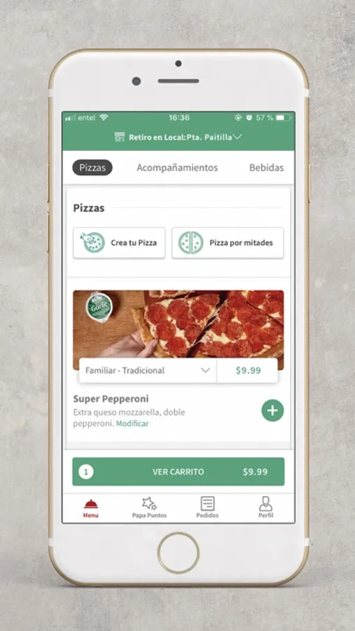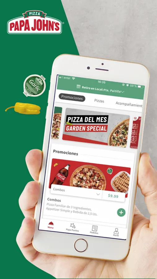 • Puedes modificar la manera de pedir tu pizza ya sea como dalivery o retirando en local.