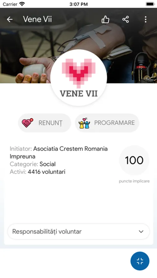 Iar dacă ești voluntar, atunci poți să îți identifici proiectul sau proiectele unde vrei să activezi. Sortate în funcție de categorie, dată sau apropriere față de tine, acum ai posibilitatea de a identifica ce te definește. Vei fi la curent cu proiectele unde ai ales să te implici, vei primi notificări pentru acțiunile ce urmează să aibă loc și vei putea să citești noutățile referitoare le acestea.
