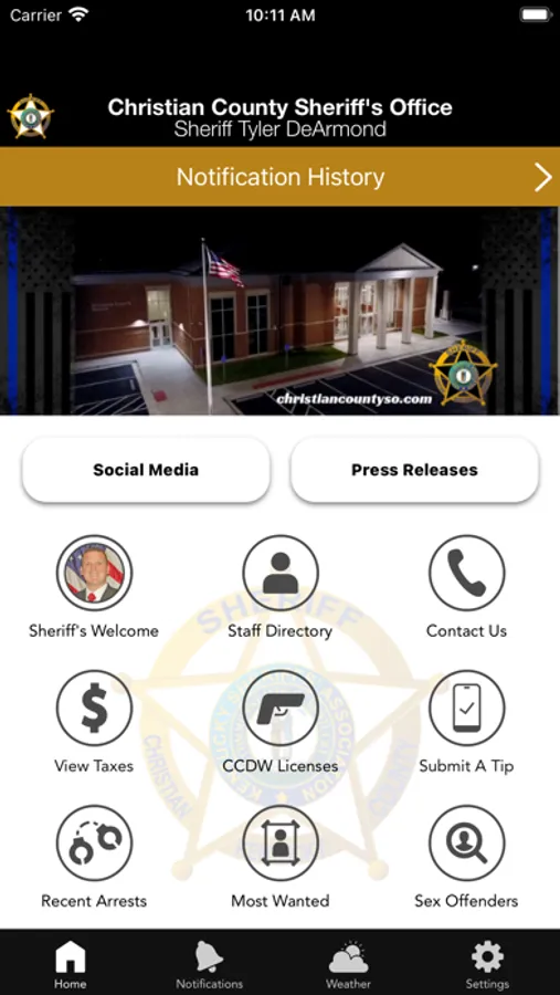 The Christian County Sheriff’s Office mobile application is an interactive app developed to help improve communication with area residents. The Christian County Sheriff App allows residents to connect with the Christian County Sheriff’s Office by submitting tips and other interactive features, as well as providing the community the latest public safety news and information.