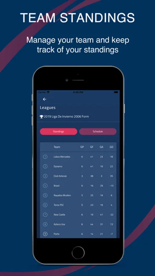 -Keep track of your team's league history and standings.