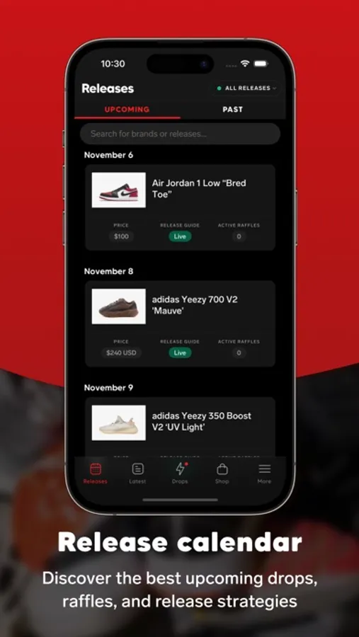 Get a comprehensive and up-to-date release calendar featuring upcoming sneaker releases, restocks and drops from across the world. Never miss a drop again as the DROPS by SoleSavy - Sneakers app provides release guides, release dates, release strategy, and retailers for top brands such as Nike, Jordan, adidas, New Balance, ASICS and Salomon. Use the release calendar filters and search bar to quickly find the releases that you’re interested in. Stay one step ahead and be prepared to cop the upcoming sneaker releases.