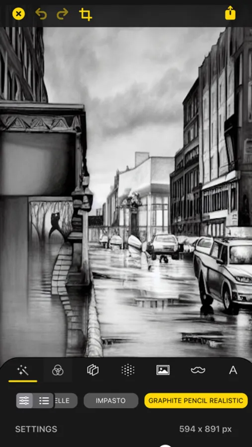 * Pencil: transforms your photos into hand-made graphite pencil drawings. We use hand-made textures to give an ultra realistic effect to your photos.