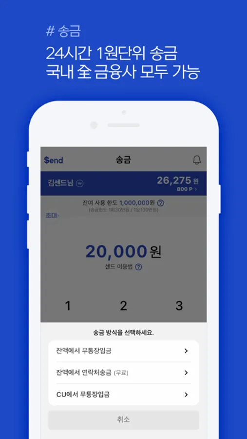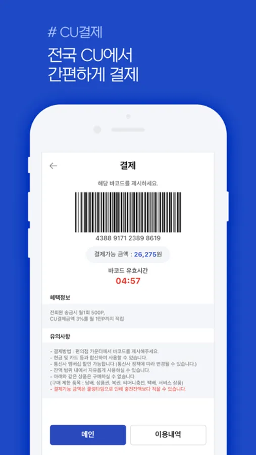 ■ CU결제 : 센드잔액으로 CU편의점에서 편하게 결제(결제처 확대예정)