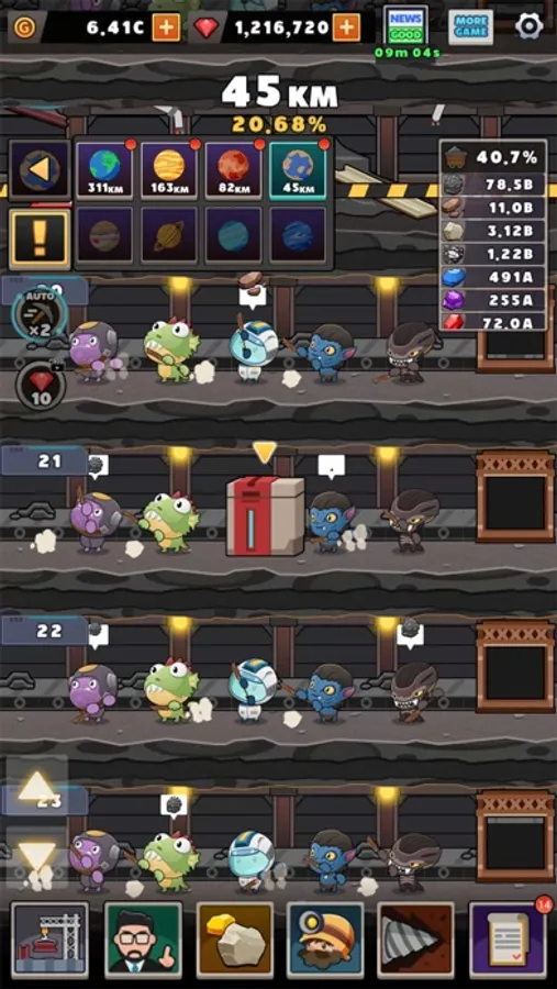 Unlike other clicker idle games, Cave Driller does not required touch frequently, thus units will be mining automatically without clicking and touching, and drills will dig the ground to expand mine.