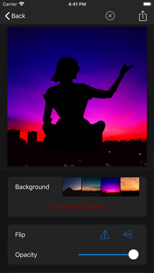 • Supports beautiful silhouette image presets. You can also use your own photos.