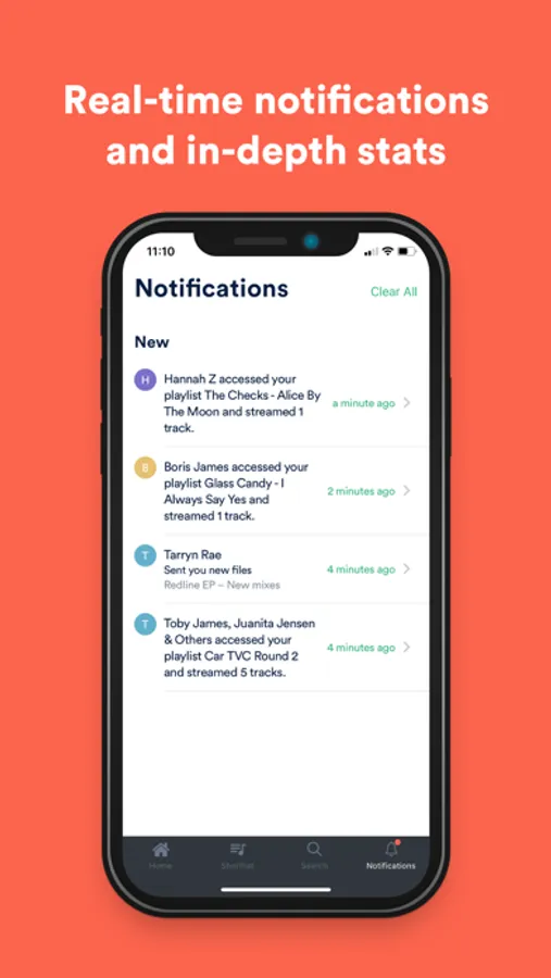 • Share playlists with a few taps and get in depth notifications on access and new files.