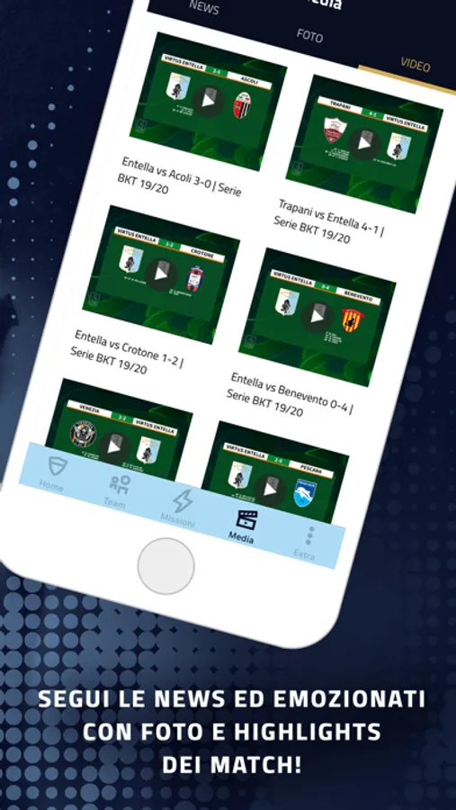 Grazie all’app potrai rimanere aggiornato su tutte le novità relative al club, conoscere i risultati, consultare la classifica, scoprire foto e video esclusivi: tutto questo, e ancor di più, su un’unica piattaforma. Inoltre, nella sezione dedicata, potrai partecipare a quiz, giochi e missioni di diverso tipo per acquisire punti, sfidare gli altri tifosi per il primo posto in classifica e accedere a esperienze esclusive targate Virtus Entella!