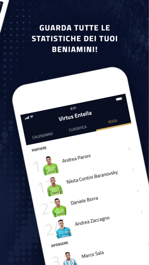 - personalizzare le tue foto con la FanCam e i colori della Virtus Entella;