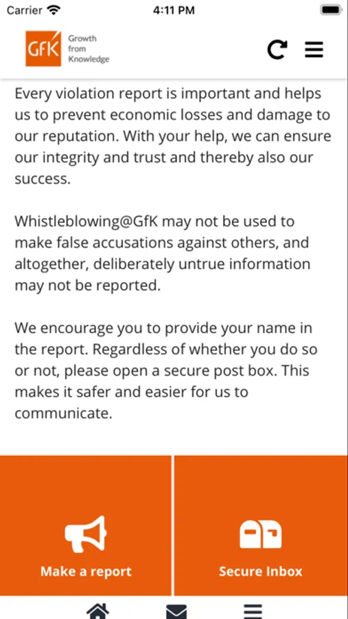 The following information (available in the Whistleblowing@GfK App and on the Whistleblowing@GfK web portal) should be read carefully before a whistleblowing report is submitted: