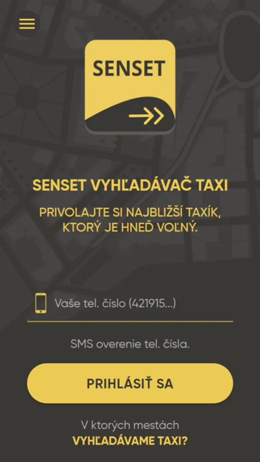 Aplikácia SENSET je vo viacerých, aj menších Slovenských mestách, vďaka čomu si privoláte taxi napr. v Bardejove, Trnave a pod.