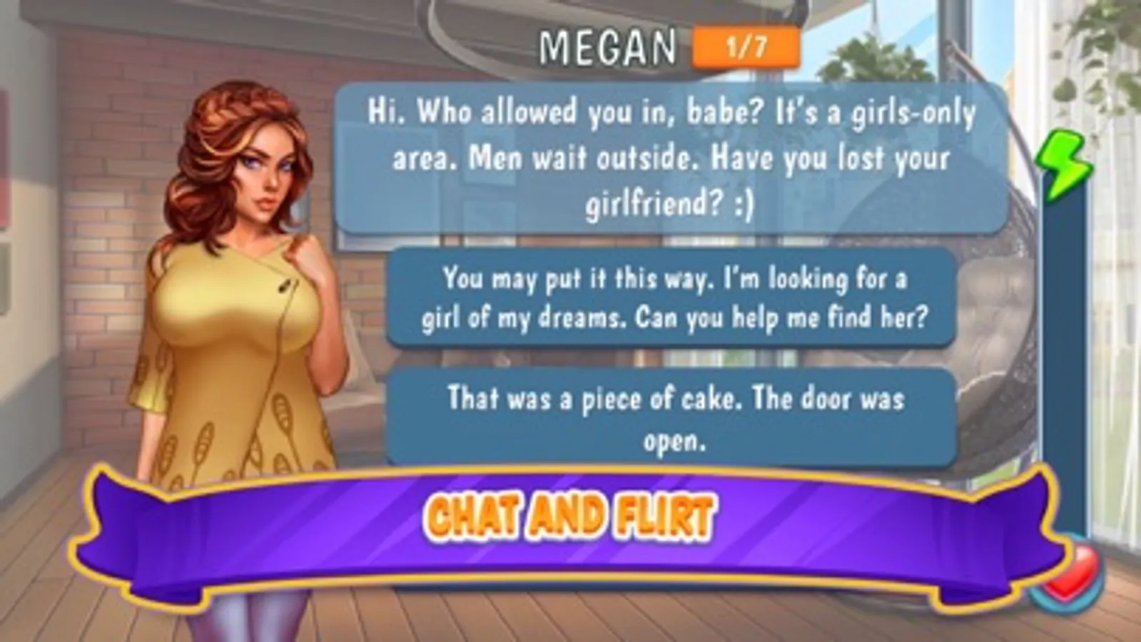 The story begins with an application on a mobile device that indicates the concentration of beautiful girls. The radar application pointed to the Campus, which is located very close. There you meet three charming students who are clearly interested in you and are eager to communicate with you.