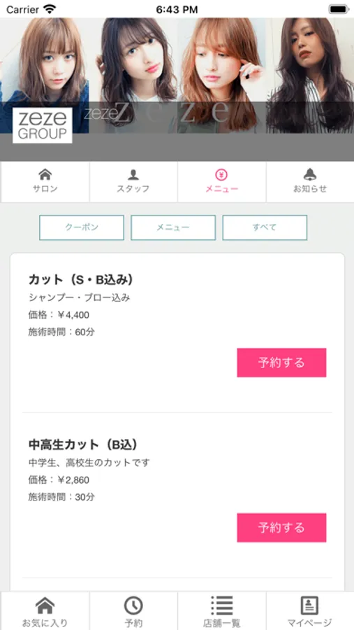 これまでの来店履歴や予約内容、お店からのお知らせをチェック。