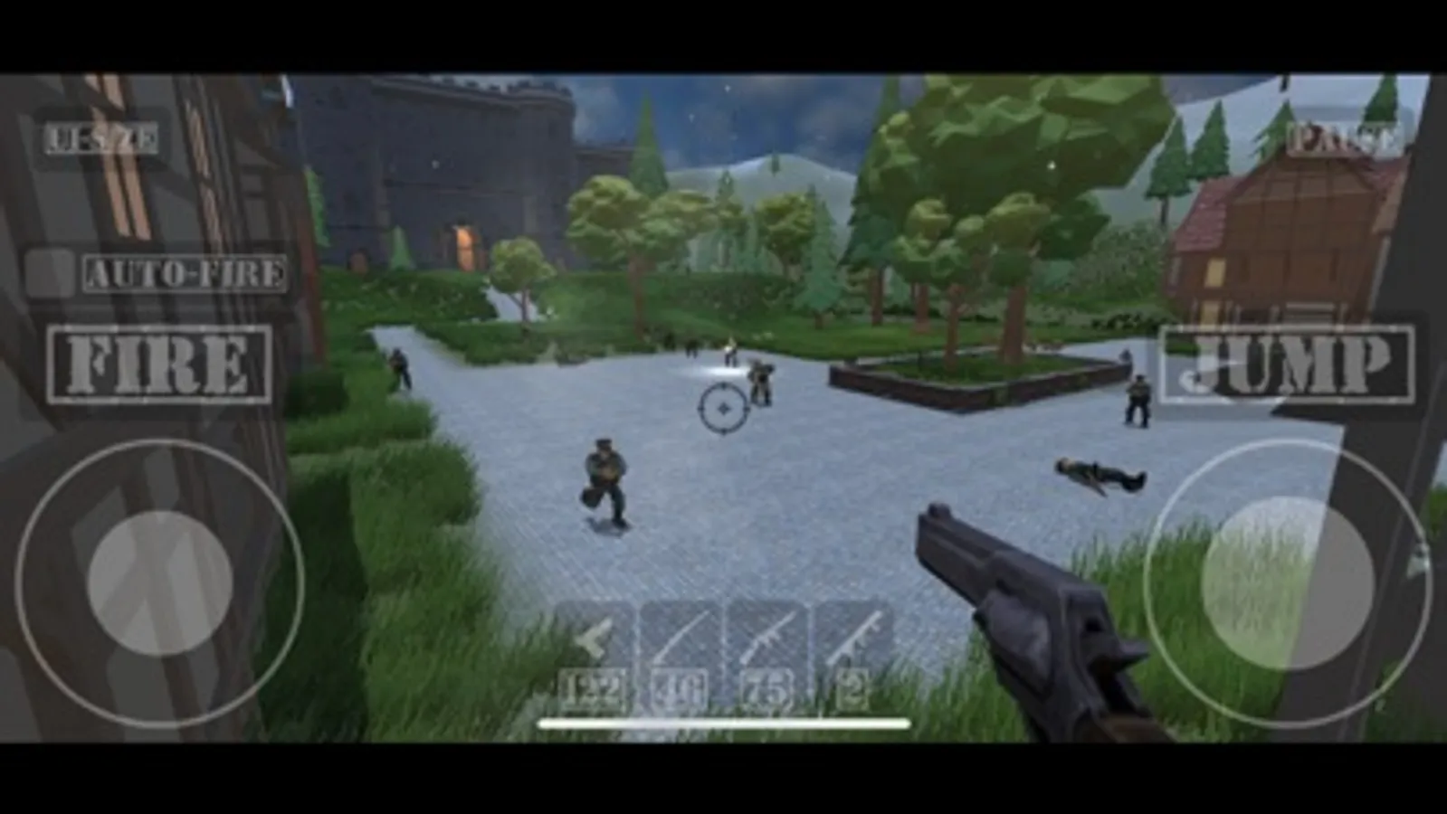 Just a simple intuitive UI, a series of maps from France to India, and a whole lot of fighting, using pistols, rifles, machine guns and rocket propelled grenades!