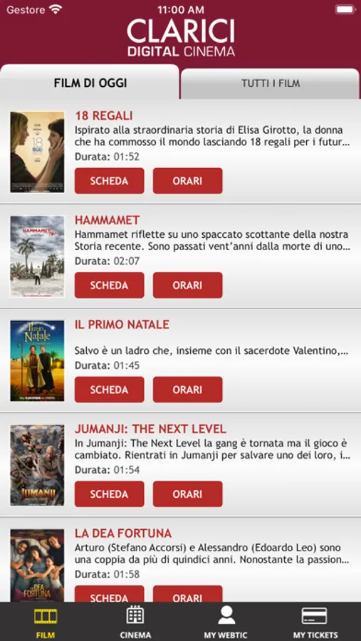 Tariffe e condizioni commerciali dettagliate su https://www.cinemaclarici.it.