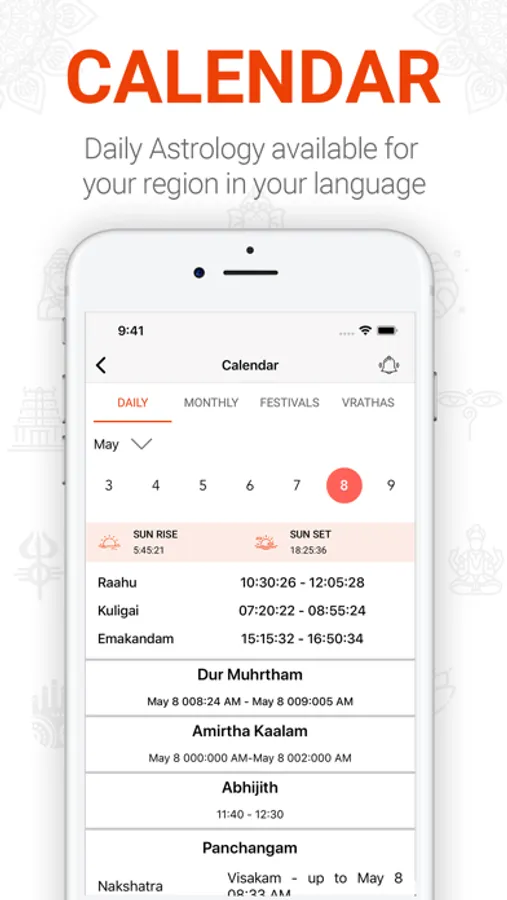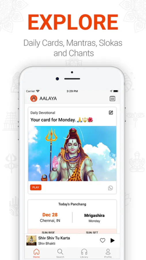 Our goal is to bring your culture closer to you. In addition to unlimited spiritual music, Aalaya helps you with your morning prayers customized to the day of the week, daily horoscope for your region, Hindu calendar, worship guides, and more.