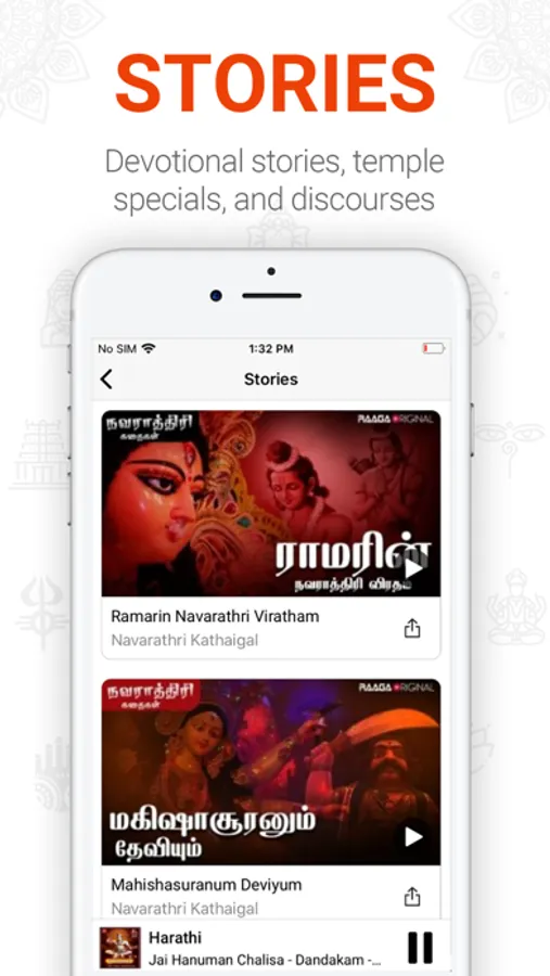 Explore and dive into this divine bliss of unlimited mantras, bhajans, stories, scriptures, and discourses.