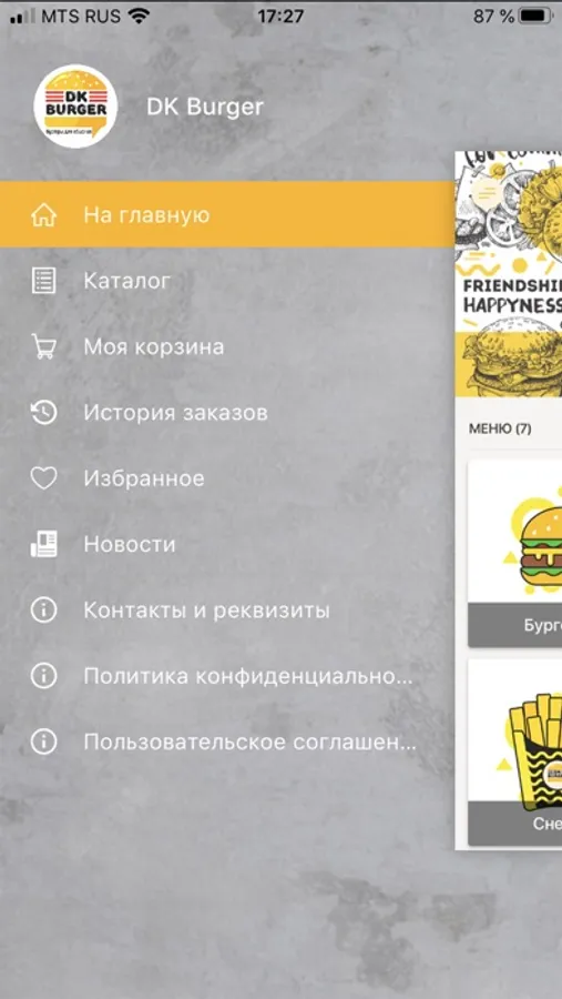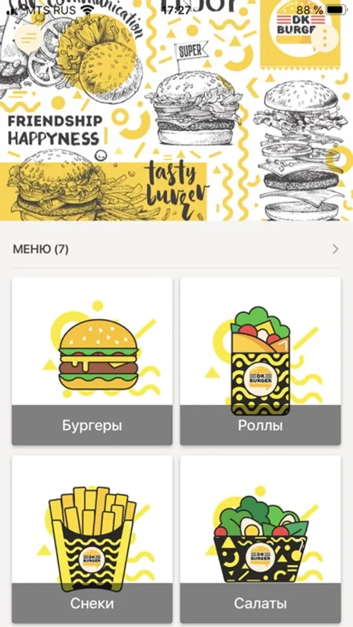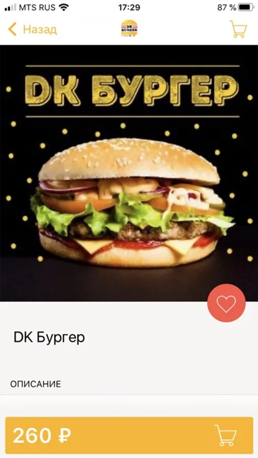 Простой и понятный дизайн приложения, доступ к специальным акциям от DK BURGER, оплата банковской картой или наличными курьеру.