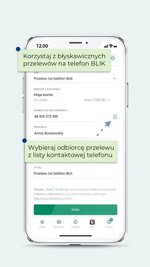 • błyskawicznie wykonasz przelew na telefon BLIK