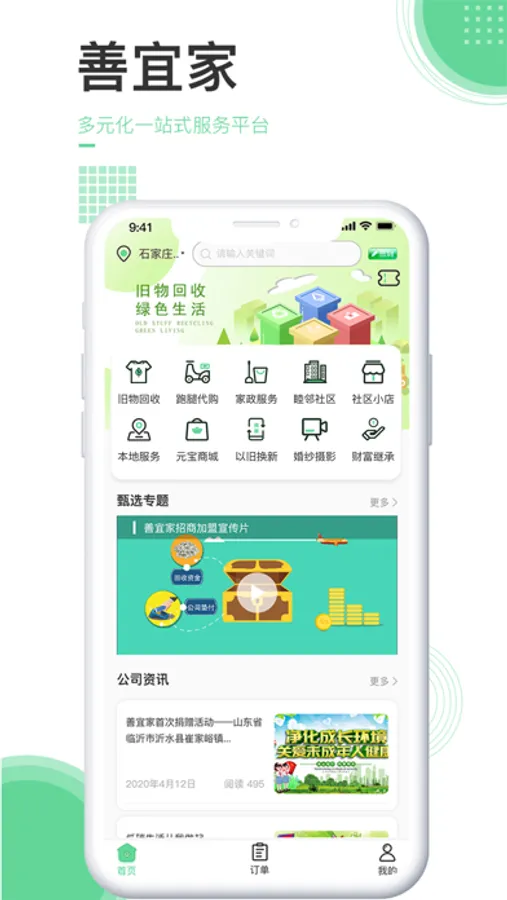 善宜家APP,回收旧物资,旧衣物,旧电子产品,旧书籍,旧家具,生活垃圾,让城市和农村垃圾得到更好的环保处理。