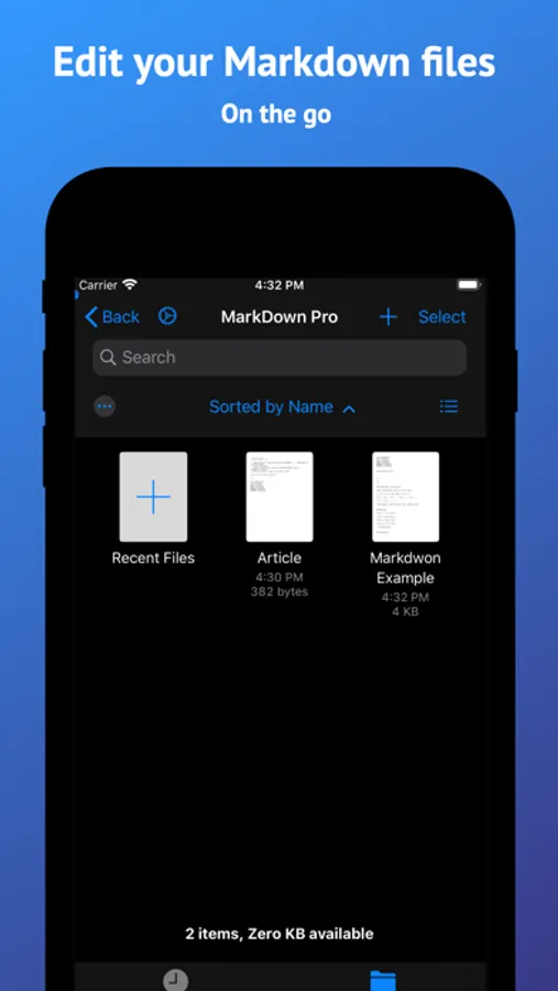 Markdown Pro is a simple Markdown editor for your iOS devices. It lets you to create and edit your .md files and export a PDF or HTML from them.