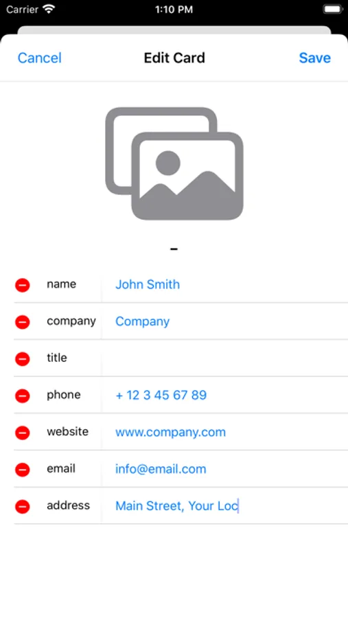 Business Card Reader uses a smartphone camera or reads a QR code from a business card. Artificial intelligence retrieves and saves data. Both actions take place in real time. The photo taken of the business card can be cropped. You can manually modify all scanned data. You decide how you want to save your data.