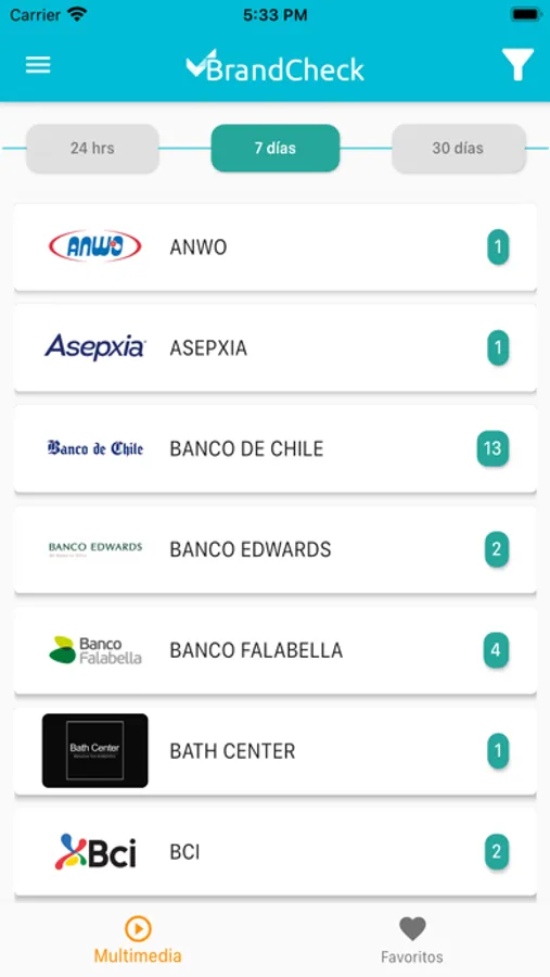 - Brandcheck te notificará las nuevas exhibiciones de tus marcas.