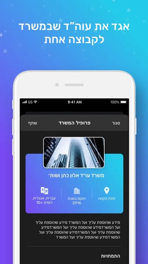 עורכי דין מאותו משרד יוכלו להתאגד כמשתמש שהוא משרד עורכי דין ולפרסם הצעות עבור המשרד.