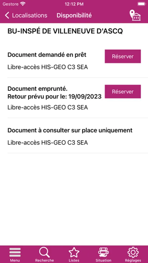 - vérifier la disponibilité du document et le réserver