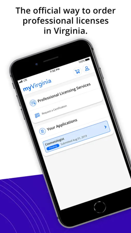 myVirginia is a brand new way for residents to order existing copies of their professional licenses. Simply answer a few questions and verify some details, then you're all set!