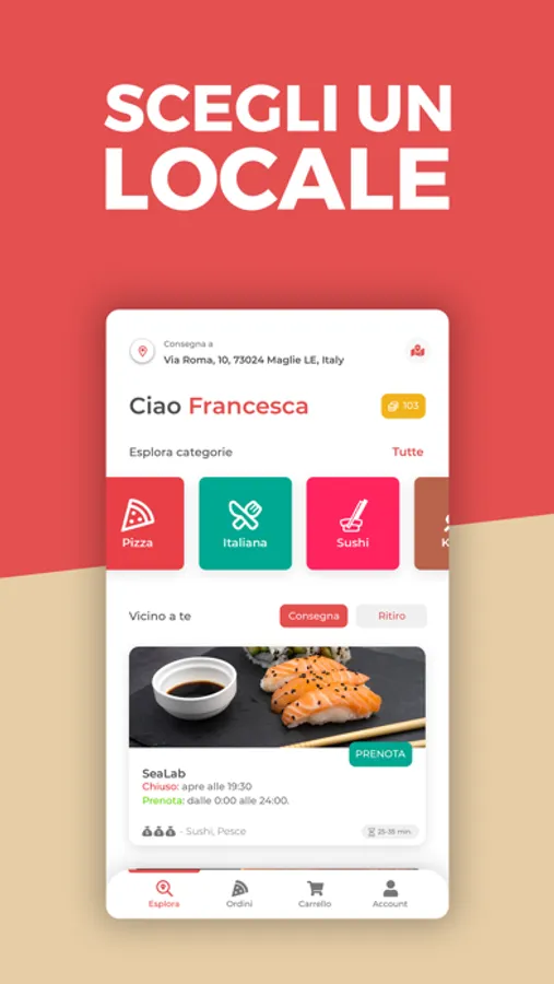 EasyGusto è l’app facile e veloce per ordinare tanti piatti gustosi da consegnare dove vuoi tu.