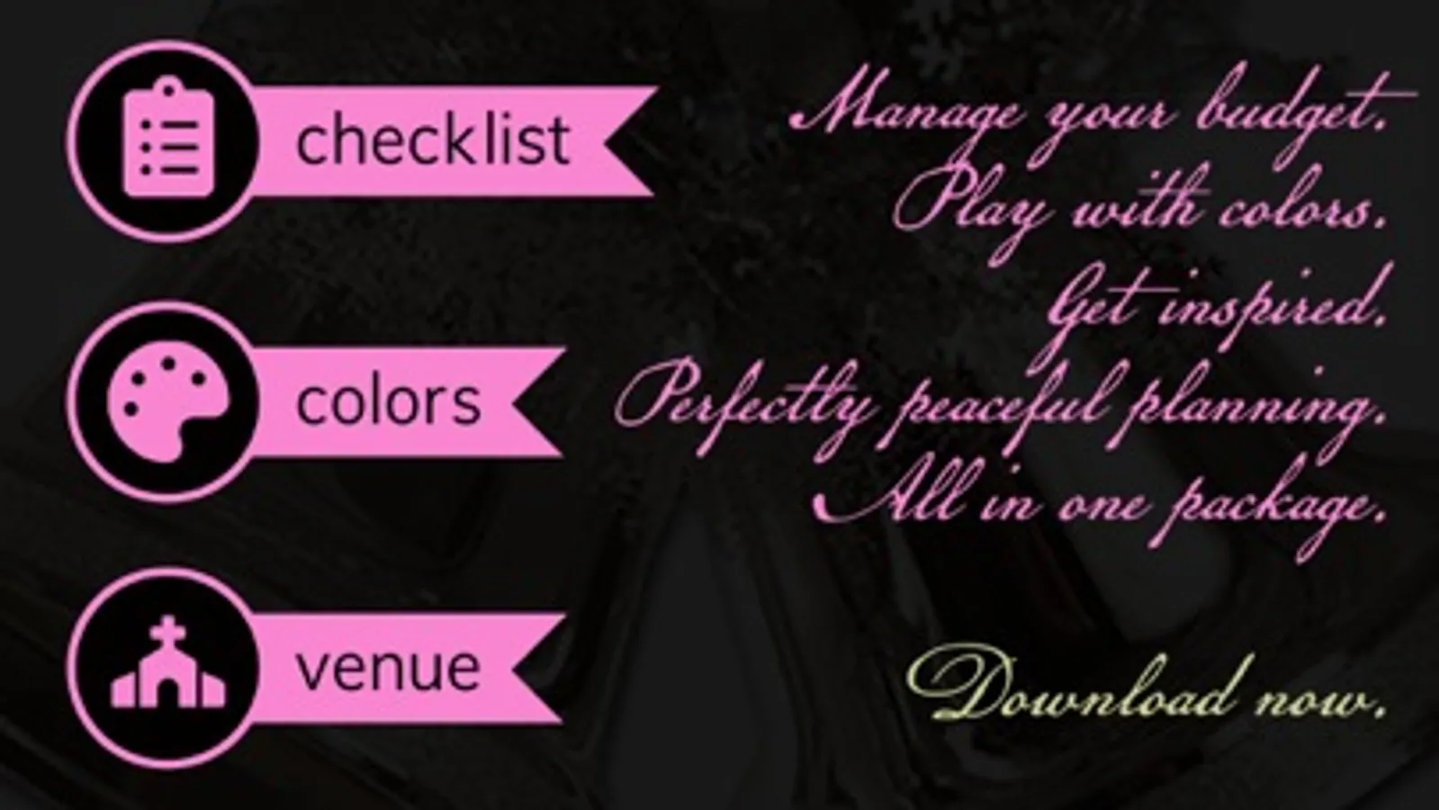 Manage your budget. Check your list. Play with colors. Get inspired. It's perfectly peaceful planning, all in one package. Download now for free.