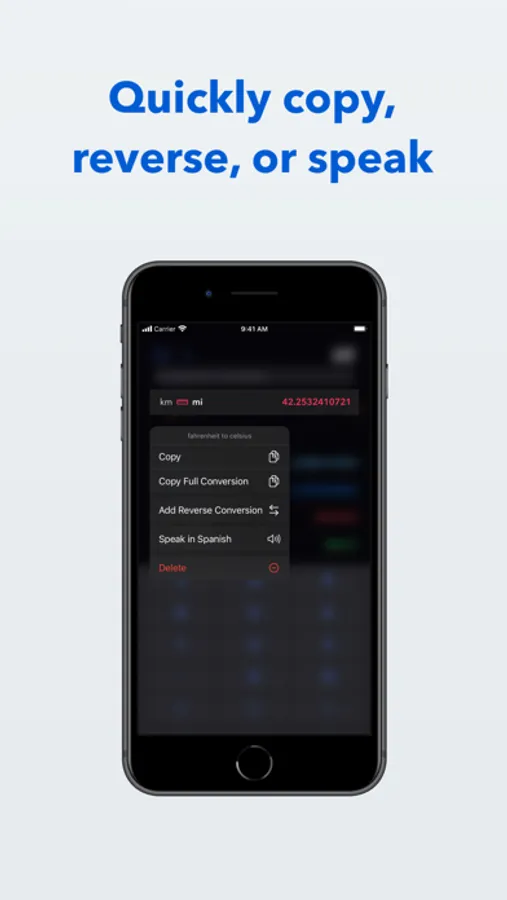 • Long press for more: copy result, copy the full text of the conversion, or quickly add a reverse conversion.
