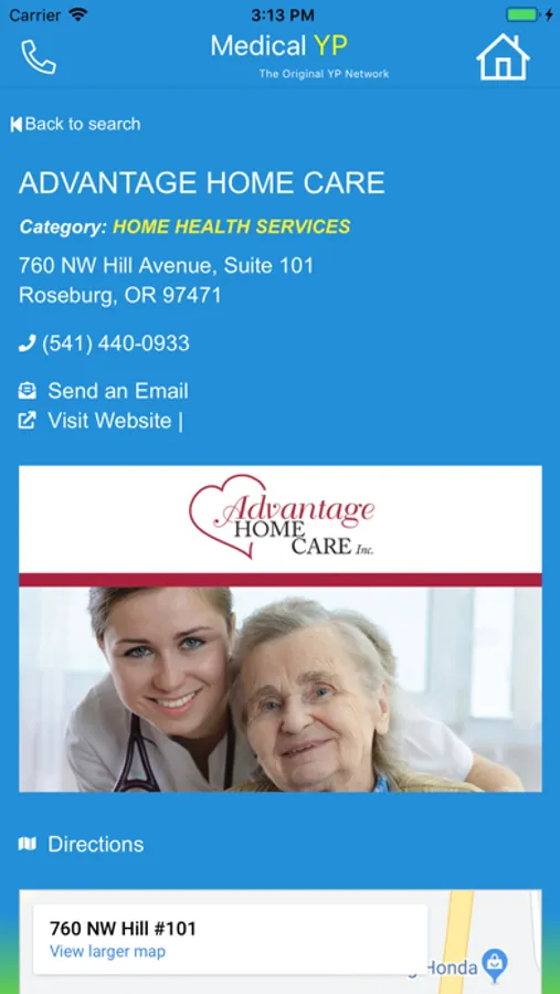 Each company listing features their phone number, address, website and email. Easily click to call, send a message, get directions or visit their website.