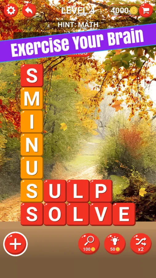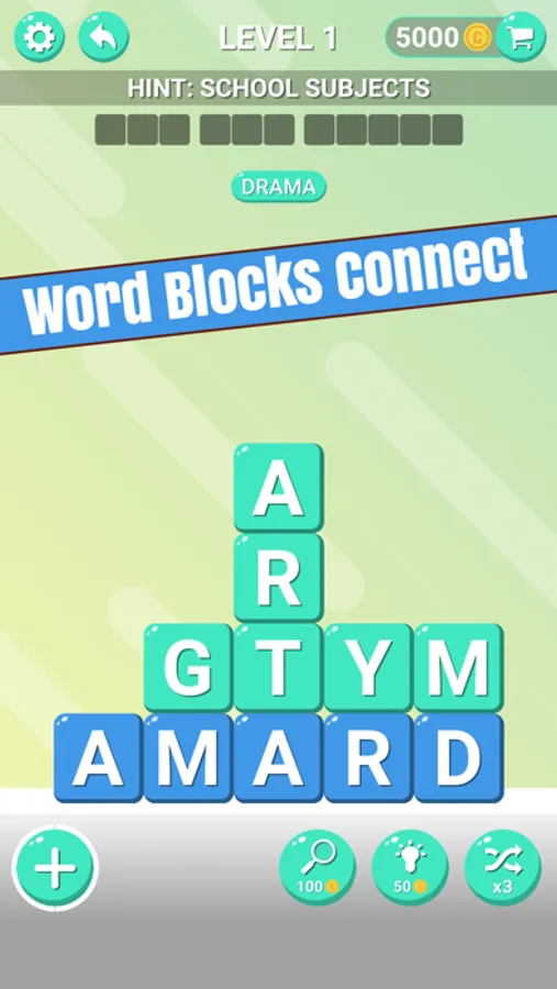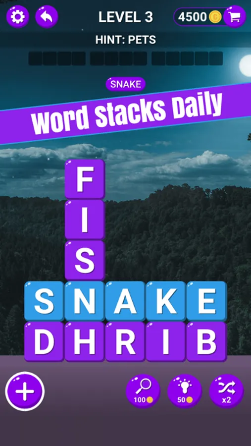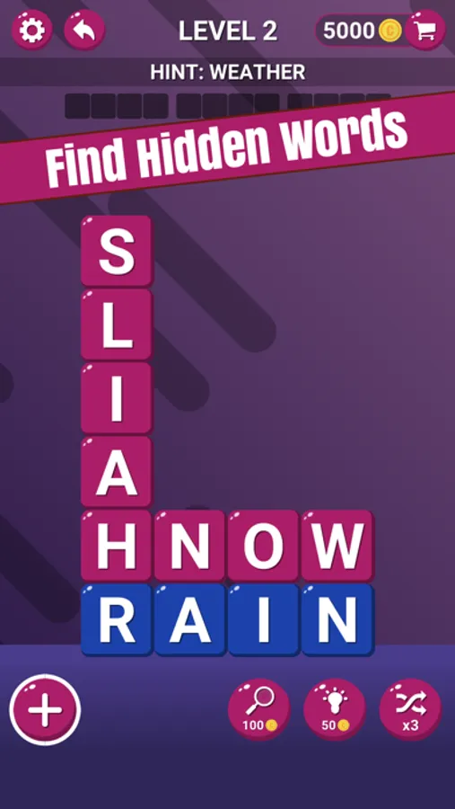 Playing this word puzzle game is easy! Simply swipe your finger over the letter tiles on board to select words. Find all the correct words to complete the level! Collect extra words to win bonus coins!