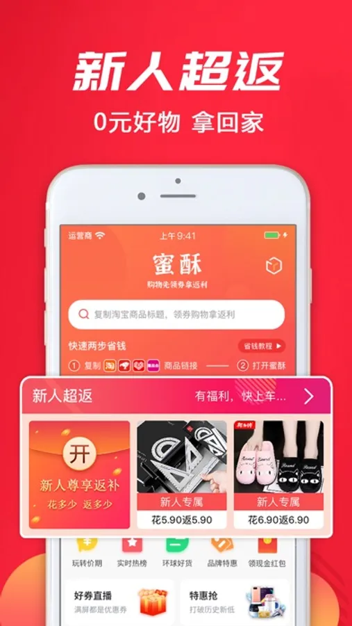 蜜酥是一新款返现返券的省钱购物助手。每日海量的优惠商品、大额券,领券下单拿返现。