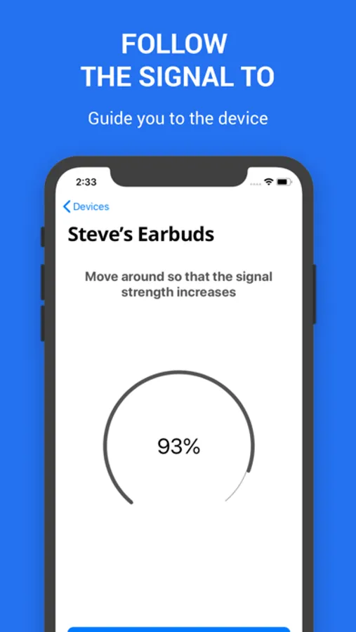 Moving around with the app until the % percentage gets higher as you getting closer - Yippy! You've now found your lost device.