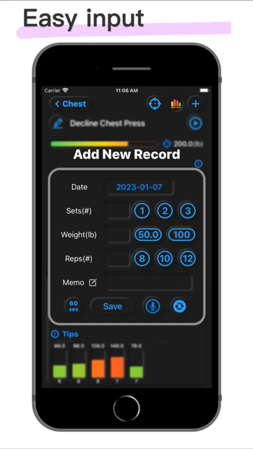 *Record the data of weight, set and repeat with ease. Set shortcuts or input with voice.