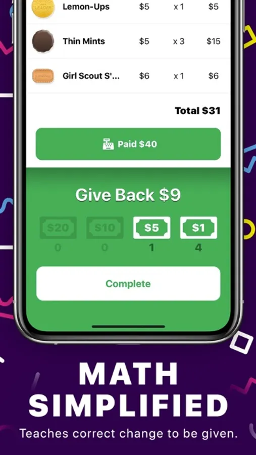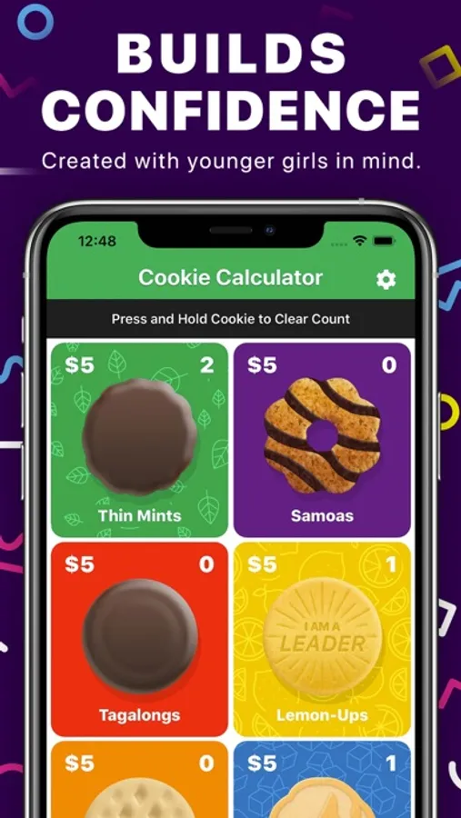 Cookie Calculator will help younger Girl Scouts add up the cost for individual cookie sales. Cookie Calculator will also help determine the correct change to be given back.