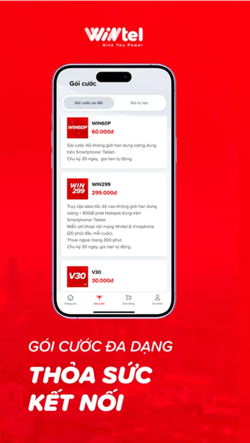 Gói cước vượt trội với data không giới hạn cho kết nối không ngưng nghỉ, trải nghiệm thanh toán và kết nối số hoàn hảo. Là một thành viên của tập đoàn Masan, Wintel cung cấp vô vàn tiện ích và các đặc quyền ưu đãi mỗi lần mua sắm tại WinMart/WinMart+ trên toàn quốc