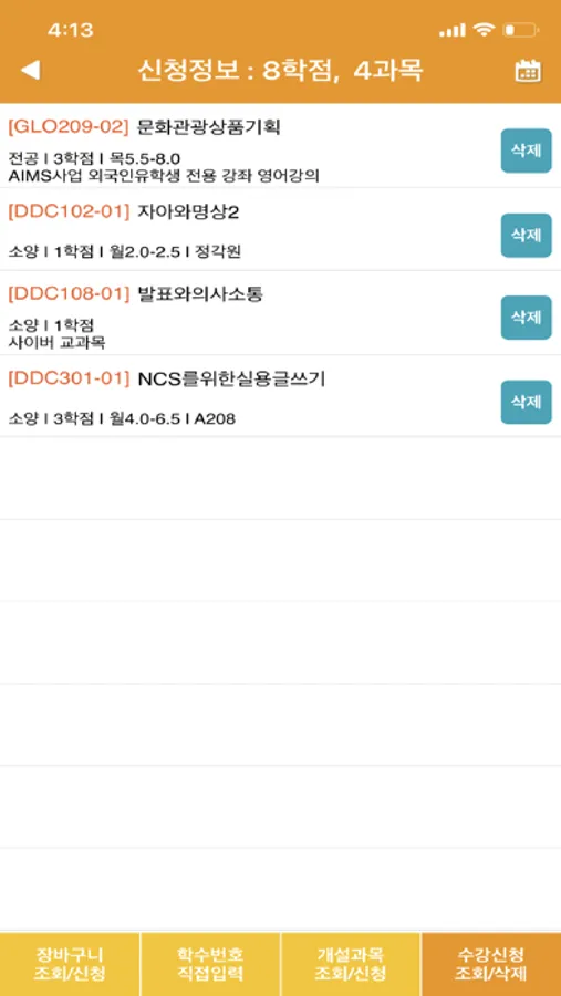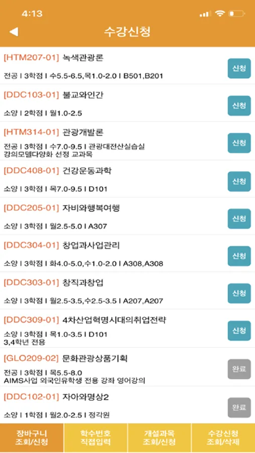 - 개설과목 조회/신청(전공, 전공외, 과목검색)
