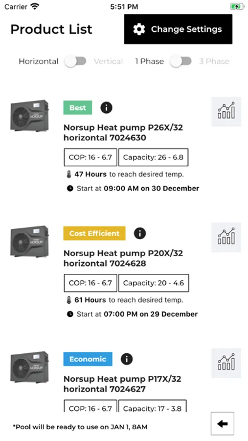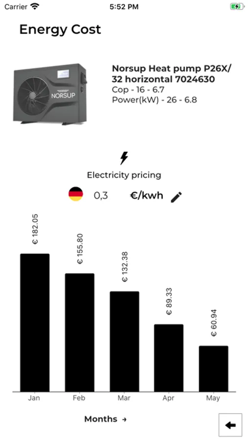 The Heat Pump configurator is a mobile application that helps the installer to find the most suitable heat pump for the customers. The installer can select the heat pump based on location, desired water temperature and volume of the pool. Other advance settings like silent mode, selecting the pool material, setting the maximum running time etc. are also provided with this application. Based on the selection made available heat pumps will be displayed. The installer has the option to evaluate the energy cost of a particular heat pump.