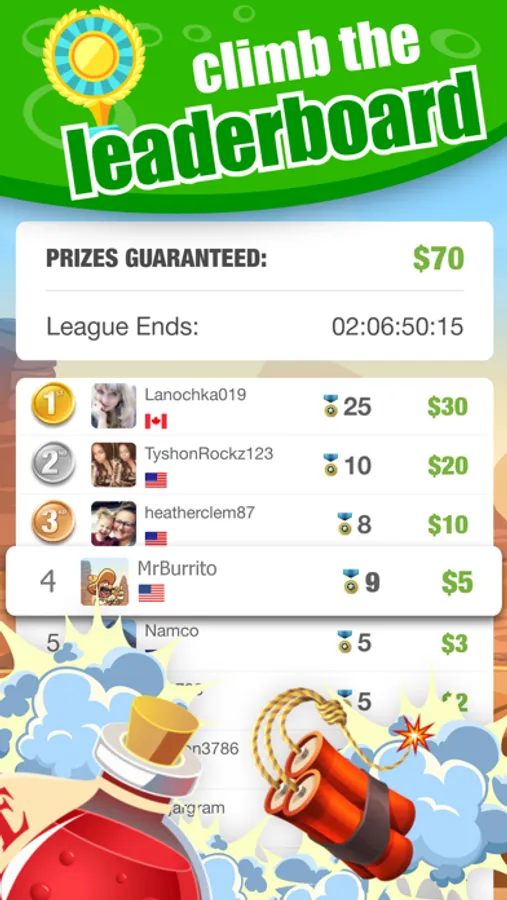 • Powered by Skillz, earn real world rewards and cash prizes (where available)