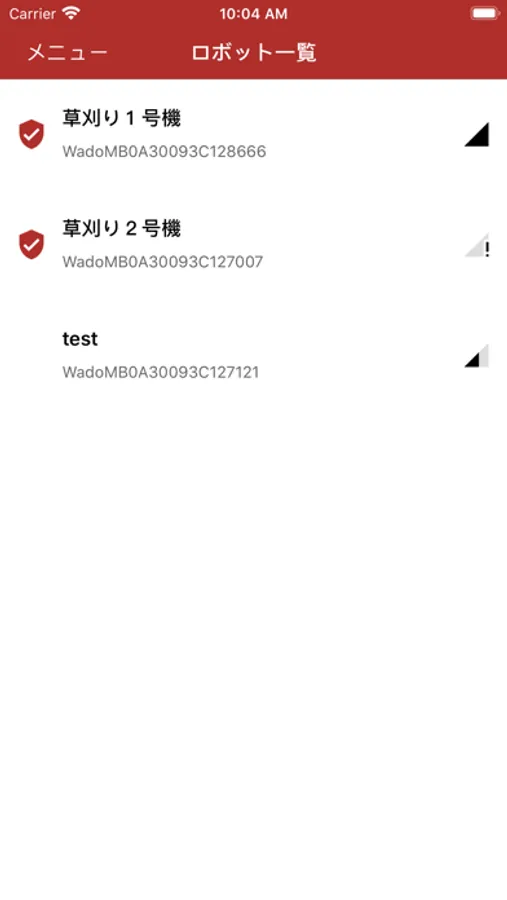 「ロボモア」アプリは、WADOロボット草刈り機の制御を行うことができます。